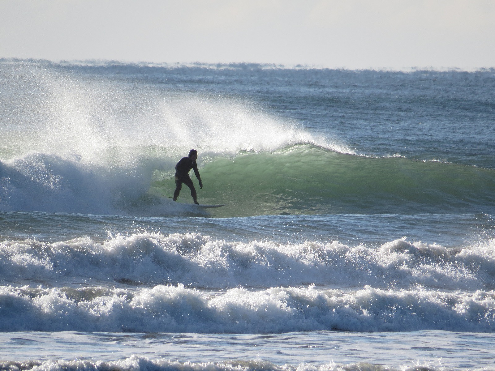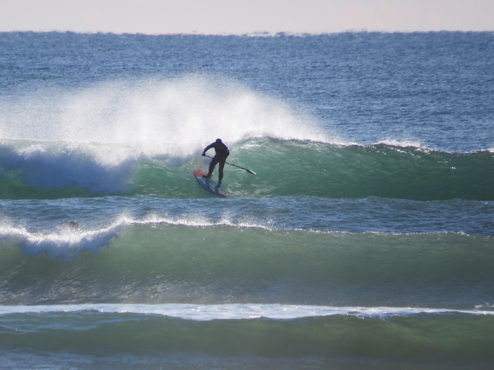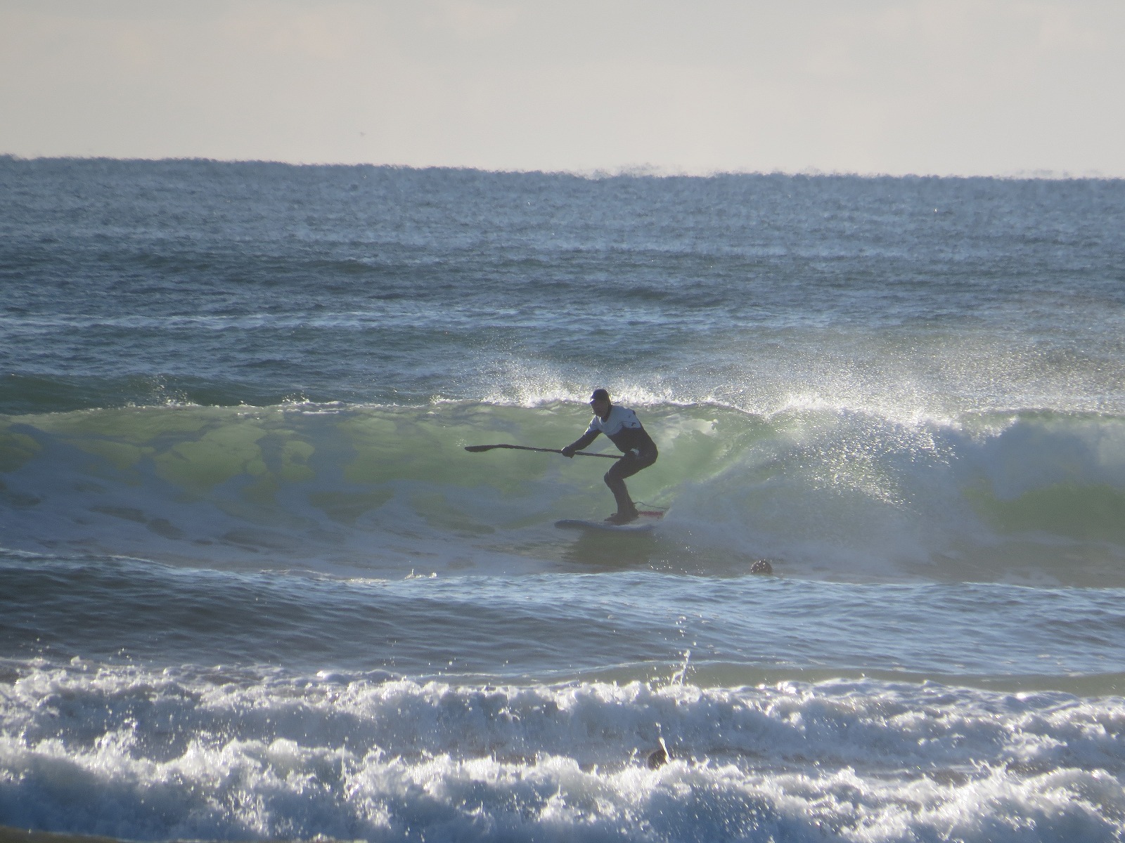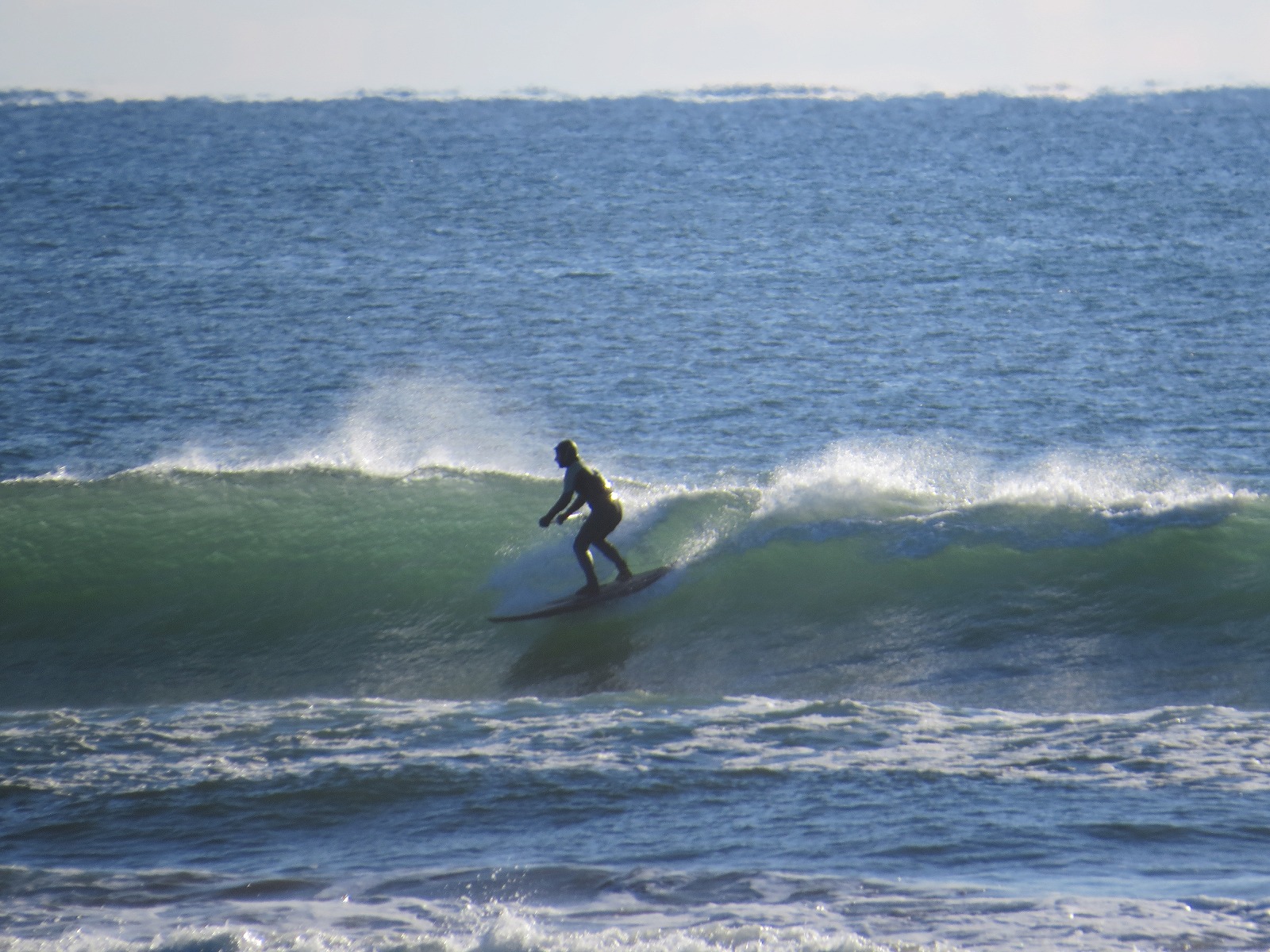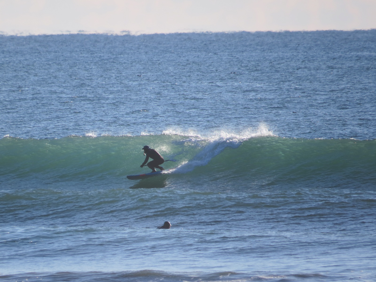 極寒の中、一番に入水しアウトサイドの波に乗っているのはOGTさん。