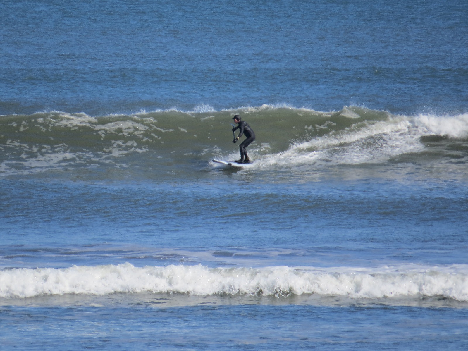 たっつーが一番に入水してアウトサイドの波に乗っている。