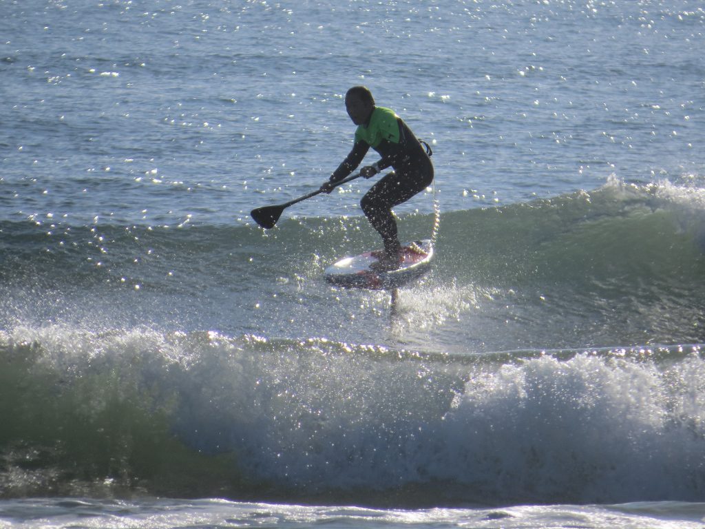 いしちゃん、ばんちゃんは強風波ありコンディションでもフォイルで出て行きます。