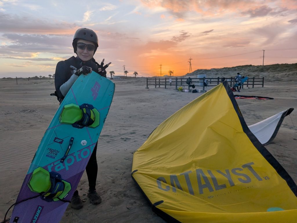 カイトを安定させ、海の中でもボードもスムーズに履けるようになって来ました。
